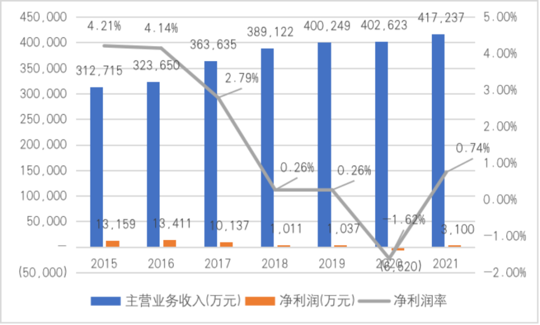 來(lái)伊份,作為“休閑零食第一股”,連續(xù)三年徘徊在40億左右的營(yíng)收,營(yíng)收增長(zhǎng)緩慢,2015年-2021年年復(fù)合增長(zhǎng)率只有5%不到。整體盈利能力也令人擔(dān)擾,過(guò)去4年凈利潤(rùn)總計(jì)為-1372萬(wàn)元,在2021年勉強(qiáng)扭虧為盈,凈利3100萬(wàn)元。