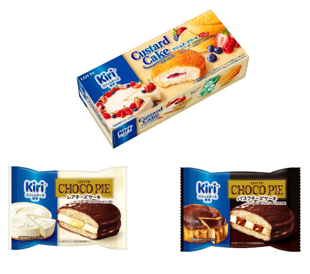 如樂天除了前文提到的冰淇淋產(chǎn)品之外,其旗下的經(jīng)典產(chǎn)品卡仕達(dá)蛋糕和巧克力派也一口氣推出過三款以使用了Kiri奶油芝士的產(chǎn)品。