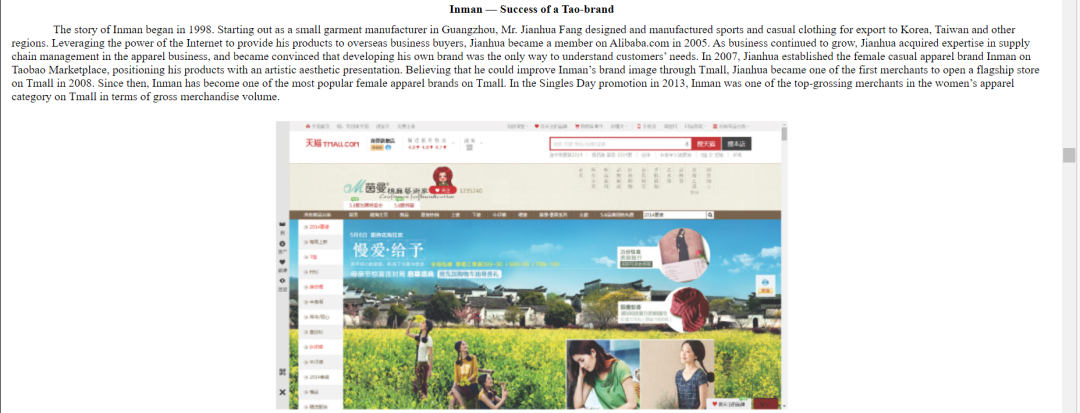 當(dāng)然,茵曼的高光時刻遠(yuǎn)不僅于此,2014年,茵曼被作為“淘品牌的成功案例”,被寫進(jìn)了阿里巴巴IPO的招股書中。