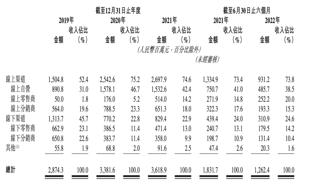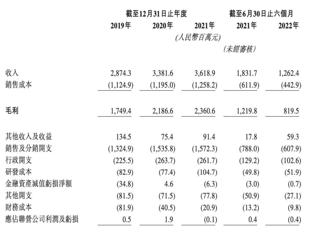 相比之下,2019年、2020年、2021年及2022上半年,上美集團(tuán)銷售及分銷開支分別為13.25億元、15.36億元、15.72億元及6.08億元,占總收入的46.1%、45.4%、43.4%及48.2%,其中營(yíng)銷及推廣開支分別達(dá)8.03億元、10.7億元、10.34億元及4.10億元,占總收入的27.9%、31.6%、28.6%、27.9%及32.5%。