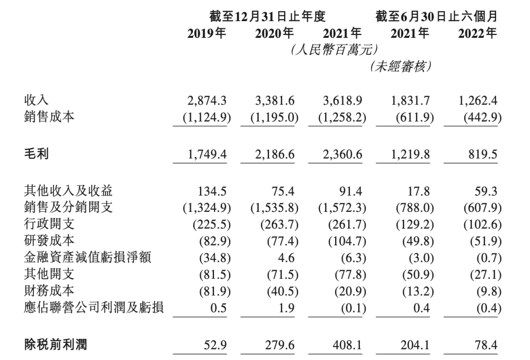 據(jù)招股書顯示,上美集團(tuán)2019年、2020年、2021年?duì)I收分別為28.74億元、33.82億元、36.19億元;毛利分別為17.49億元、21.87億元、23.61億元,除稅前利潤(rùn)分別為5940萬元、2.03億元、3.39億元。