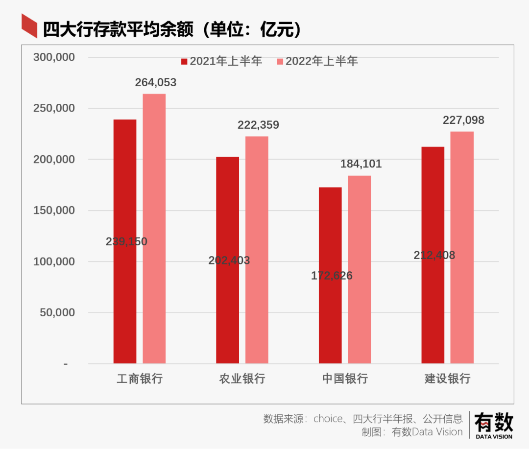 聯(lián)名潮的另一面是各大銀行的存款越來越多。以傳統(tǒng)四大行為例--工,農(nóng),中,建存款平均余額相較去年同期,分別增加了2.5萬億,2.0萬億,1.1萬億,1.5萬億,合計數(shù)可以買下整個科創(chuàng)板。