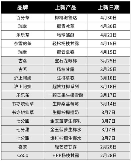 喜茶、奈雪、茶百道、瑞幸的明星產(chǎn)品中都不乏椰子風(fēng)味飲品,這對于椰樹也是一種挑戰(zhàn)。