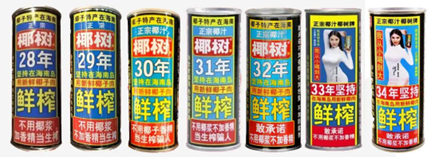 今年的椰樹集團(tuán),已經(jīng)34歲了,椰樹椰汁的外包裝宣傳語也每年一換,如今更新成了“34年堅(jiān)持在海南島用新鮮椰肉鮮榨”。