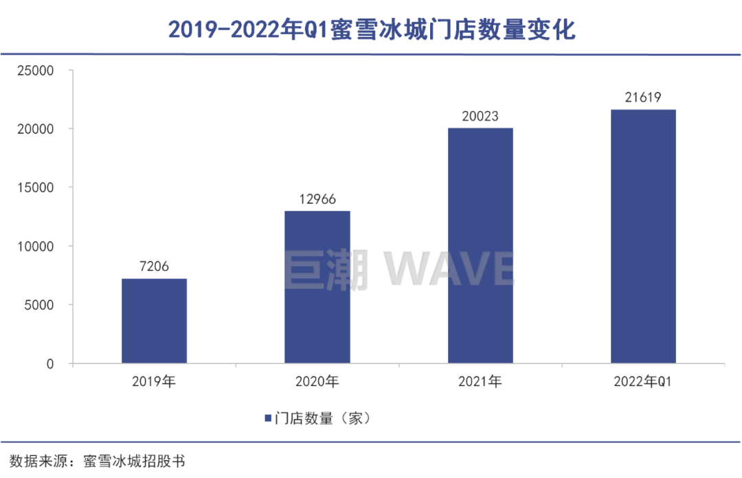 且蜜雪冰城的規(guī)模還在快速增長當中。2020年,其門店數(shù)過萬家;到了2022年,門店數(shù)超2萬,蜜雪冰城僅用了兩年時間。