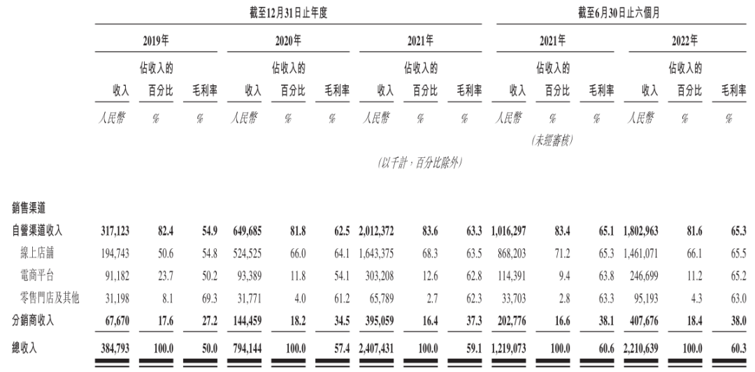 蕉下在2020年新開3家線下門店,2021年新開24家。今年上半年,蕉下新開33家線下零售門店,總數(shù)達(dá)到99家,其中41家為自營門店。不過來自門店端的收入,在總營收中不到5%。