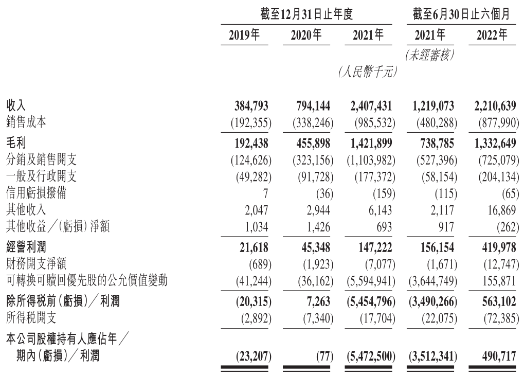 利潤方面,2022年上半年蕉下凈利潤達(dá)到4.9億元,而去年同期凈虧損35.12億元,主要來自可轉(zhuǎn)換可贖回優(yōu)先股的公允價值變動。