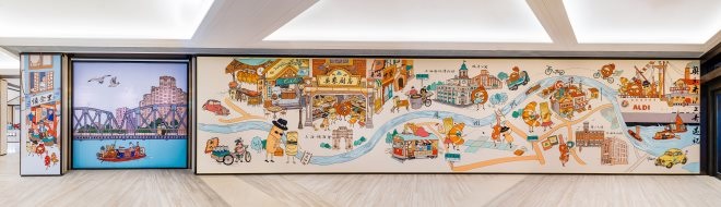 ALDI奧樂齊首度與知名青年插畫藝術家張文綺 (Vikki Zhang) 進行合作共創(chuàng),并邀請她為ALDI奧樂齊蘇河灣萬象天地店繪制了 “奧樂齊滬上奇遇記” 藝術插畫墻。