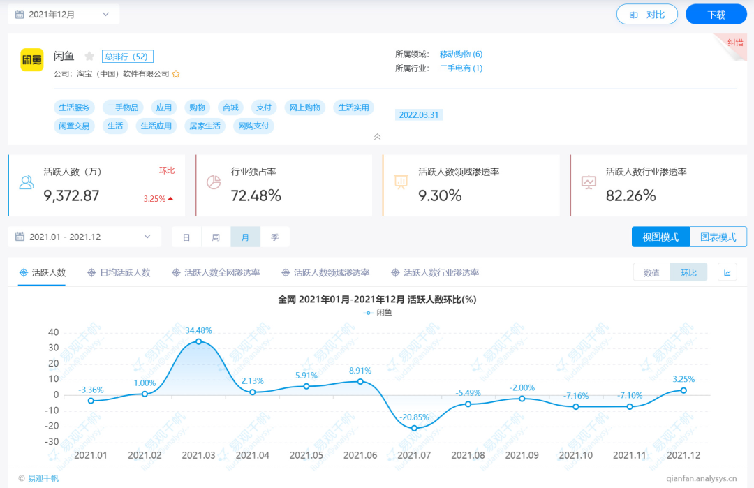 來源/易觀千帆 圖/閑魚月活等數(shù)據(jù)