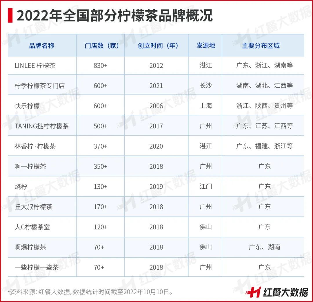 而這只是檸檬茶專門店迅猛發(fā)展的一個縮影。放眼全國市場,檸檬茶品牌也發(fā)展得如火如荼。如廣州的撻檸和王檸,發(fā)源于湛江的LINLEE、林香檸和嘆木檸等品牌也在積極走出廣東,進(jìn)一步推動了檸檬茶的全國化發(fā)展。