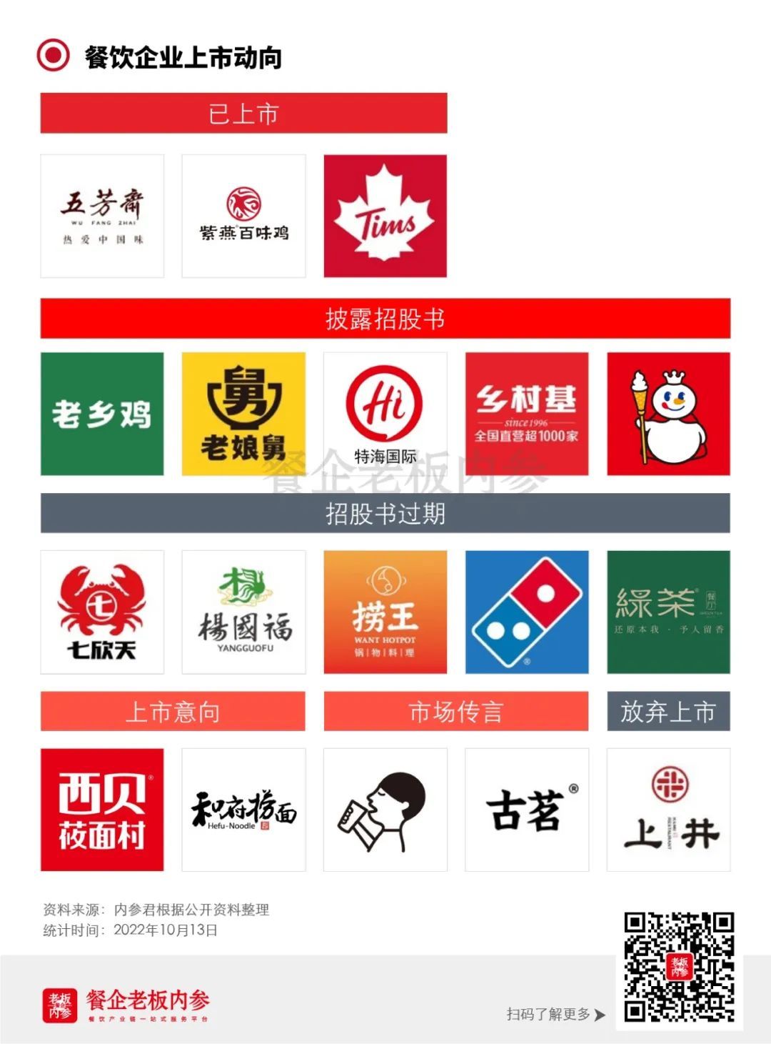 截至2022年10月13日,本年度共有18家餐飲企業(yè)傳出上市相關(guān)動態(tài)。