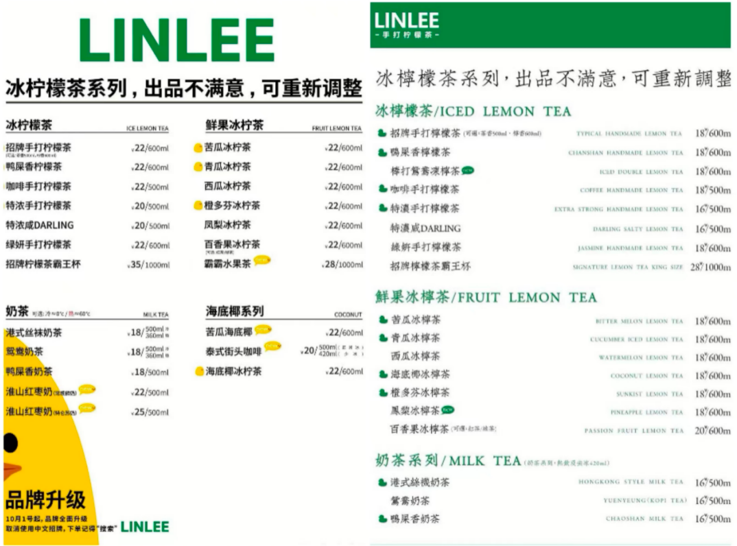 圖 / LINLEE菜單,左圖為北京地區(qū),右圖為廣州地區(qū)(來(lái)源于大眾點(diǎn)評(píng))