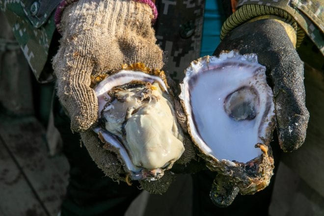 ▲ 圖為美團買菜乳山養(yǎng)殖基地新鮮捕撈的“肥肥蠔” 攝影:楊洋