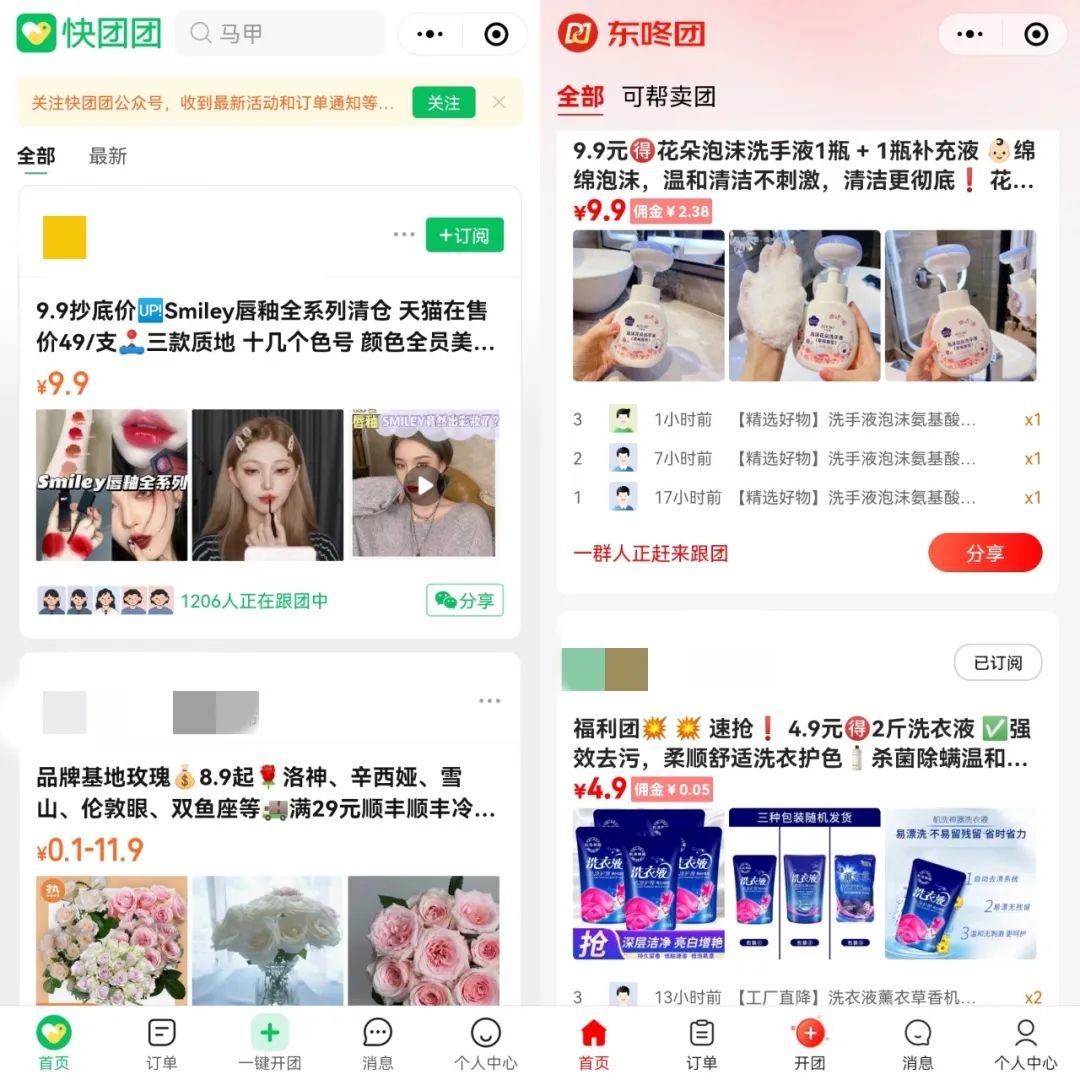 一些團(tuán)長(zhǎng)在采訪中都提到了東咚團(tuán)和快團(tuán)團(tuán)一樣的“工具屬性“,但從多個(gè)方面的比較看來(lái),兩者并不相同: