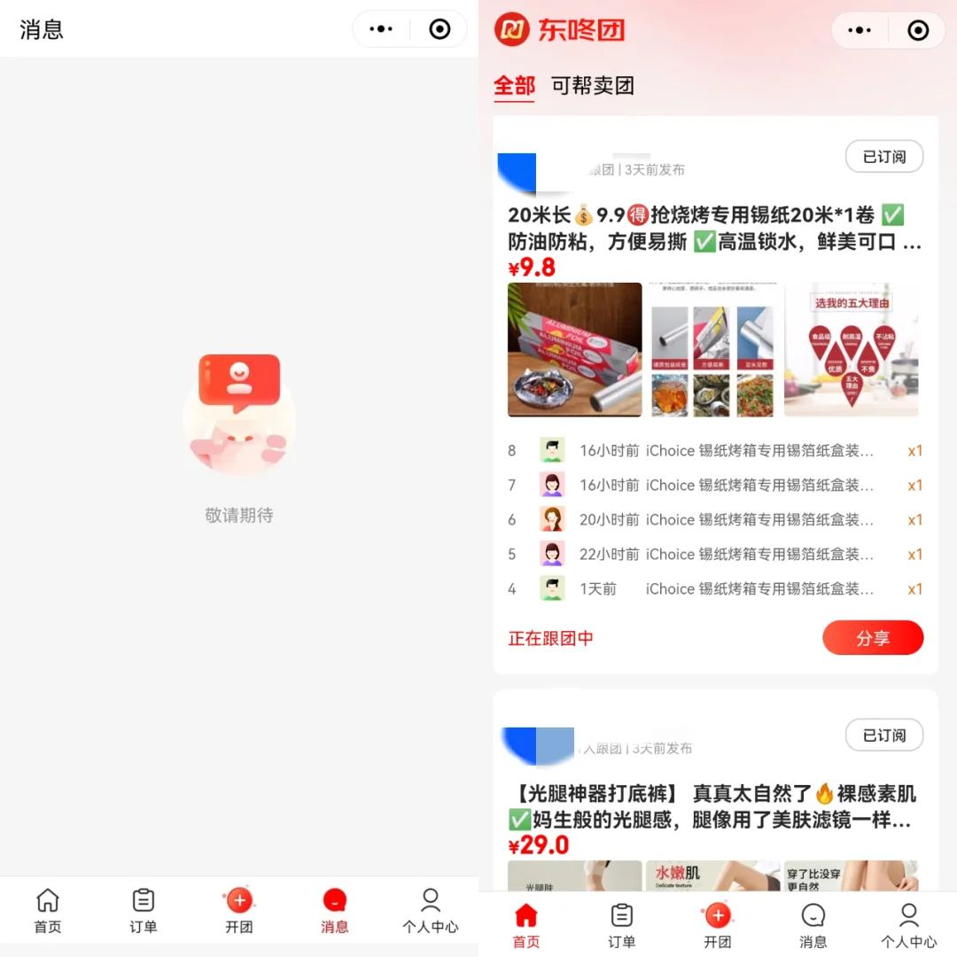 不過(guò)還處于內(nèi)測(cè)階段的東咚團(tuán)并不能在微信小程序中搜索到,主要依靠公眾號(hào)文章中的小程序碼和各個(gè)團(tuán)長(zhǎng)的推廣傳播。
