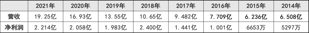 2016年,千禾焦糖色素產(chǎn)銷量全國(guó)第一,千禾醬油產(chǎn)銷量位居西部地區(qū)第一,這一年它登陸A股,伺機(jī)進(jìn)軍全國(guó)。上市以來千禾營(yíng)收規(guī)模穩(wěn)步增長(zhǎng),2016年到2021年?duì)I收從7.7億元增至19.25億元,年復(fù)合增速為20%。