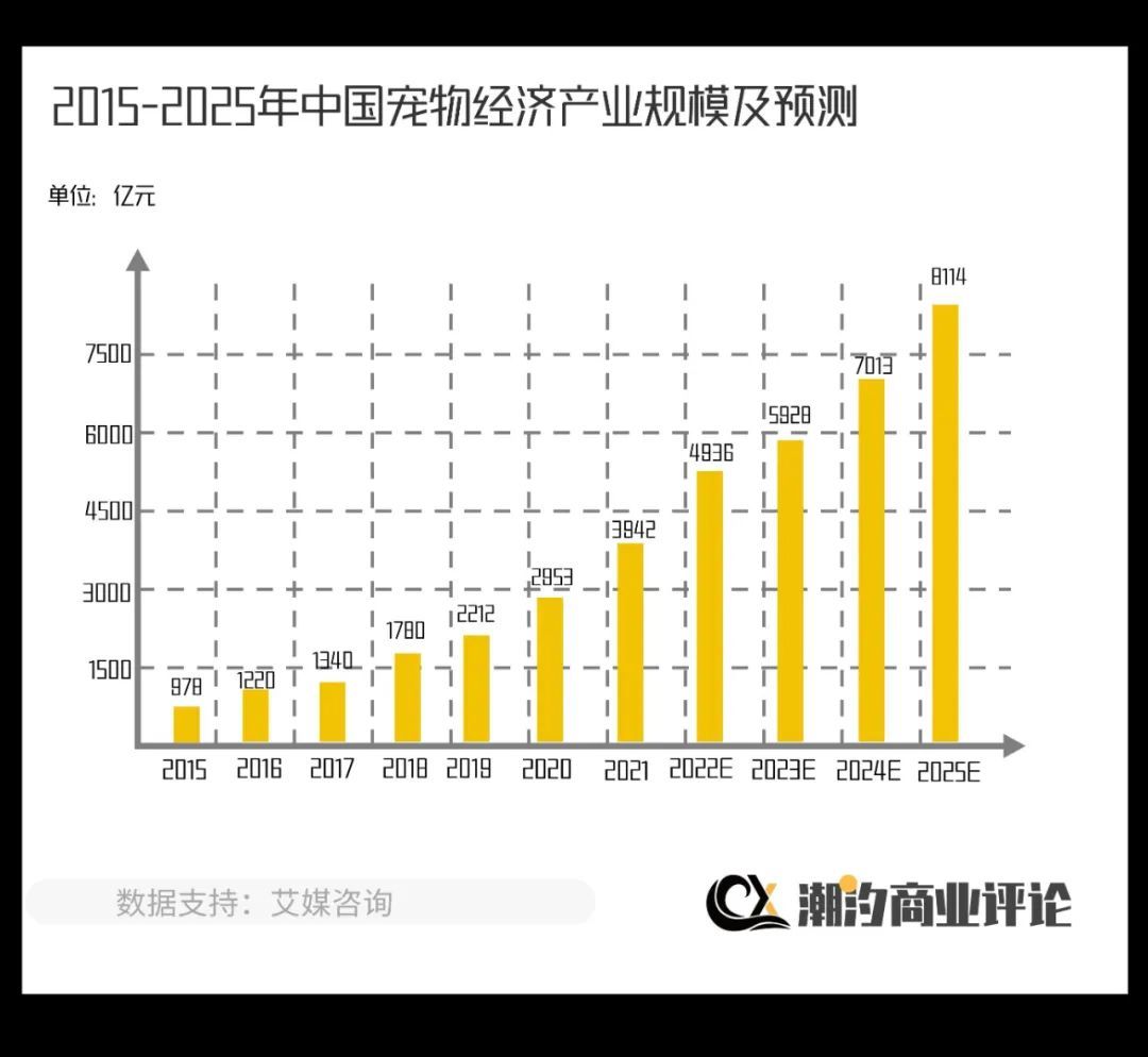 在市場(chǎng)需求的帶動(dòng)下,與寵物相關(guān)的細(xì)分賽道不斷涌現(xiàn),寵物食品(主食、零食),寵物用品(服飾、玩具)以及近些年不斷出現(xiàn)的寵物服務(wù)(寄養(yǎng)、醫(yī)療、美容、保險(xiǎn)、培訓(xùn)、殯葬)等行業(yè)規(guī)模急劇攀升,無(wú)一不在昭示著一個(gè)新「寵物經(jīng)濟(jì)」時(shí)代的降臨。