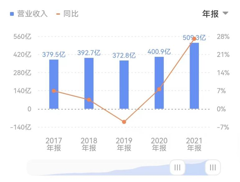 據(jù)公開數(shù)據(jù)顯示,創(chuàng)維2021年的營(yíng)業(yè)收入為509.3億元,首次突破500億大關(guān),比預(yù)定時(shí)間晚了足足6年。
