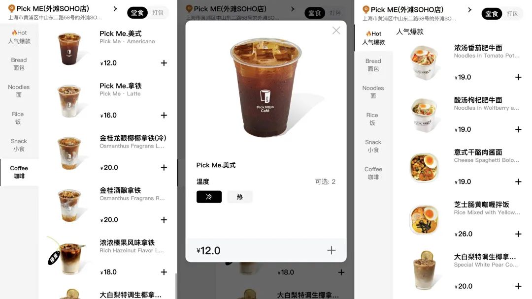 而此次,國內(nèi)粉面賽道的頭部品牌的和府撈面入局,Pick me一出生就是咖啡+中式快餐的模式,首店又開在上海外灘,可見重視程度。