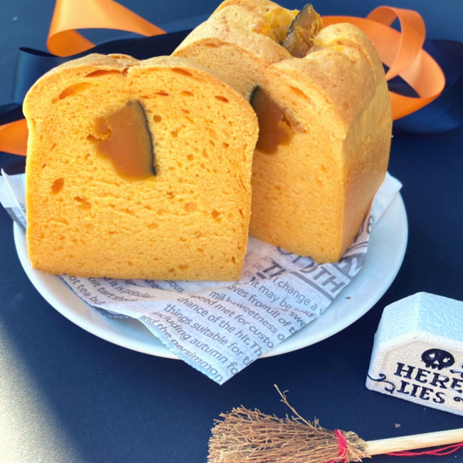 此外,南瓜在面包、蛋糕等烘焙制品中也是常用原料。如雞蛋吐司專賣店R Baker推出的萬圣節(jié)限定南瓜味蓬蓬雞蛋面包,把南瓜糊揉進面團里,帶來秋季氛圍的萬圣節(jié)橙色和在口中蔓延的南瓜味道。更添加了一整塊的南瓜塊,在豐富了南瓜風(fēng)味的同時,也增加了口感的層次。