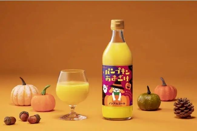 在現(xiàn)制飲品之外,依然可以看到南瓜在飲料品類中的運用。如龜甲萬推出過添加了南瓜粉的南瓜豆乳飲料。中埜酒造在萬圣節(jié)期間發(fā)售過無酒精南瓜甜米酒,使用米和米曲發(fā)酵的甜米酒結(jié)合北海道的南瓜,帶來天然的甜味,小孩子也可以飲用……這些添加了南瓜的飲品的共通點就是會強調(diào)南瓜本身的風(fēng)味和天然的甜味。