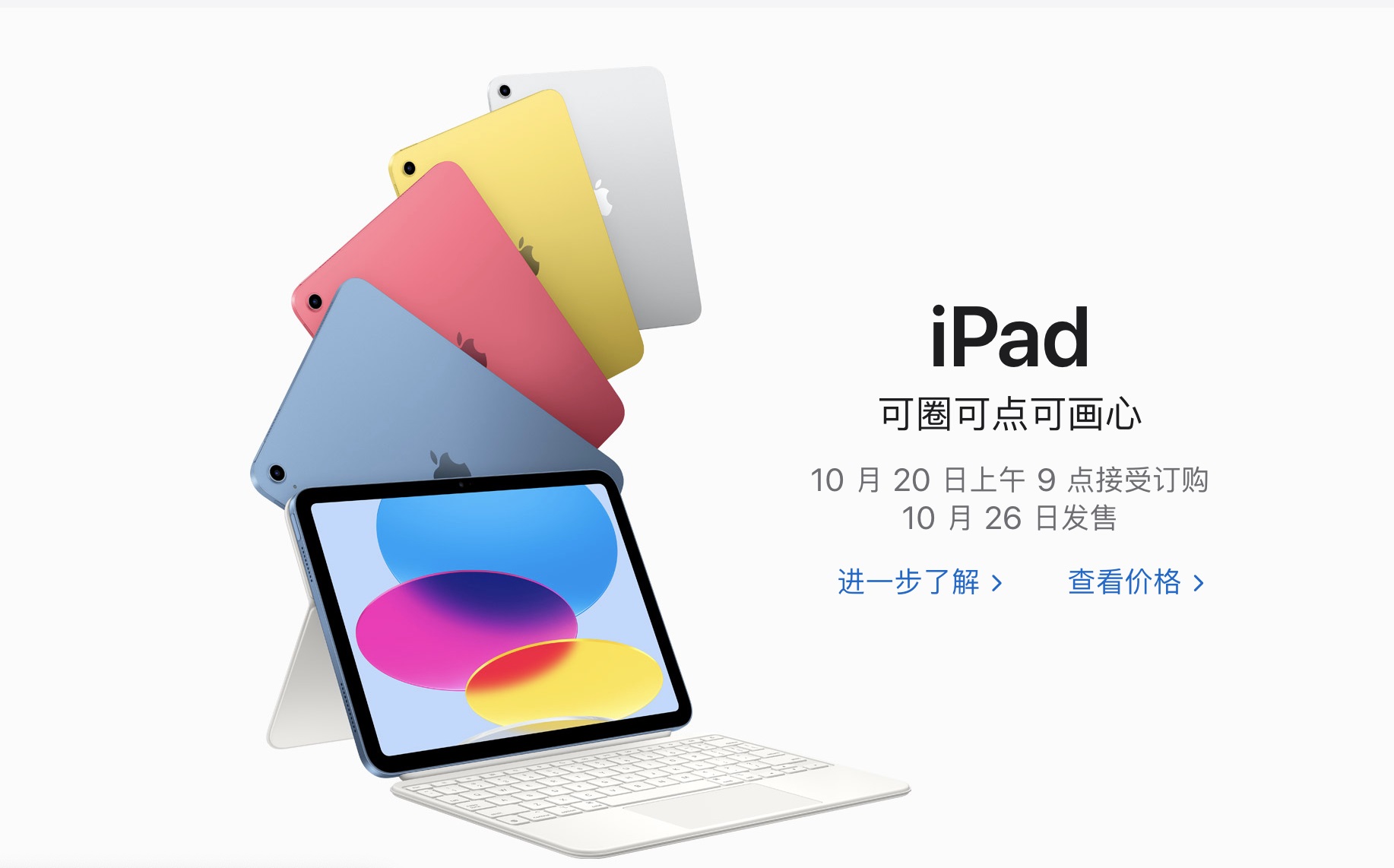 10月18日晚間,蘋果用官網(wǎng)更新的方式發(fā)布了M2芯片版iPad Pro系列和全新十代iPad。兩款新iPad將于10月20日開始預(yù)購,10月26日發(fā)售。