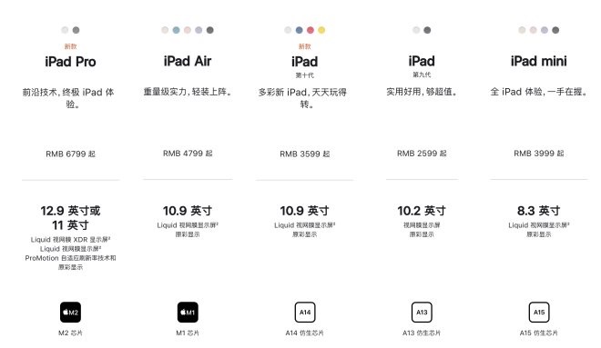 新一代iPad Pro系列升級了M2芯片,全新十代iPad換了充電接口,外觀有所升級,起售價上漲尚可理解。但在售前代產(chǎn)品價格上漲有些讓人摸不著頭腦。
