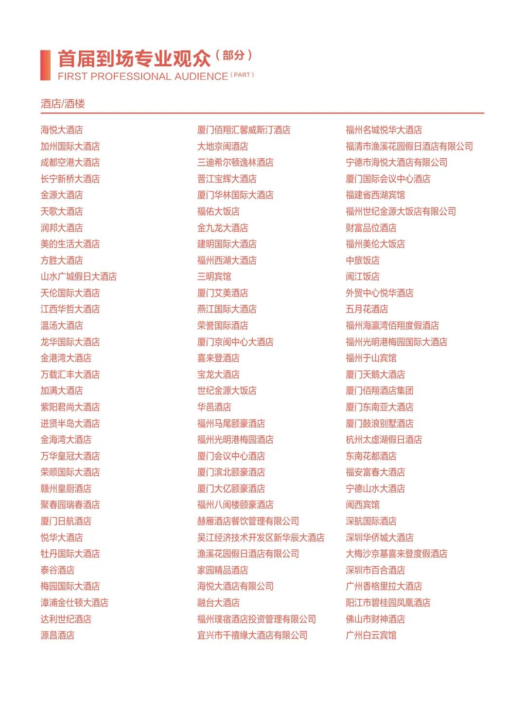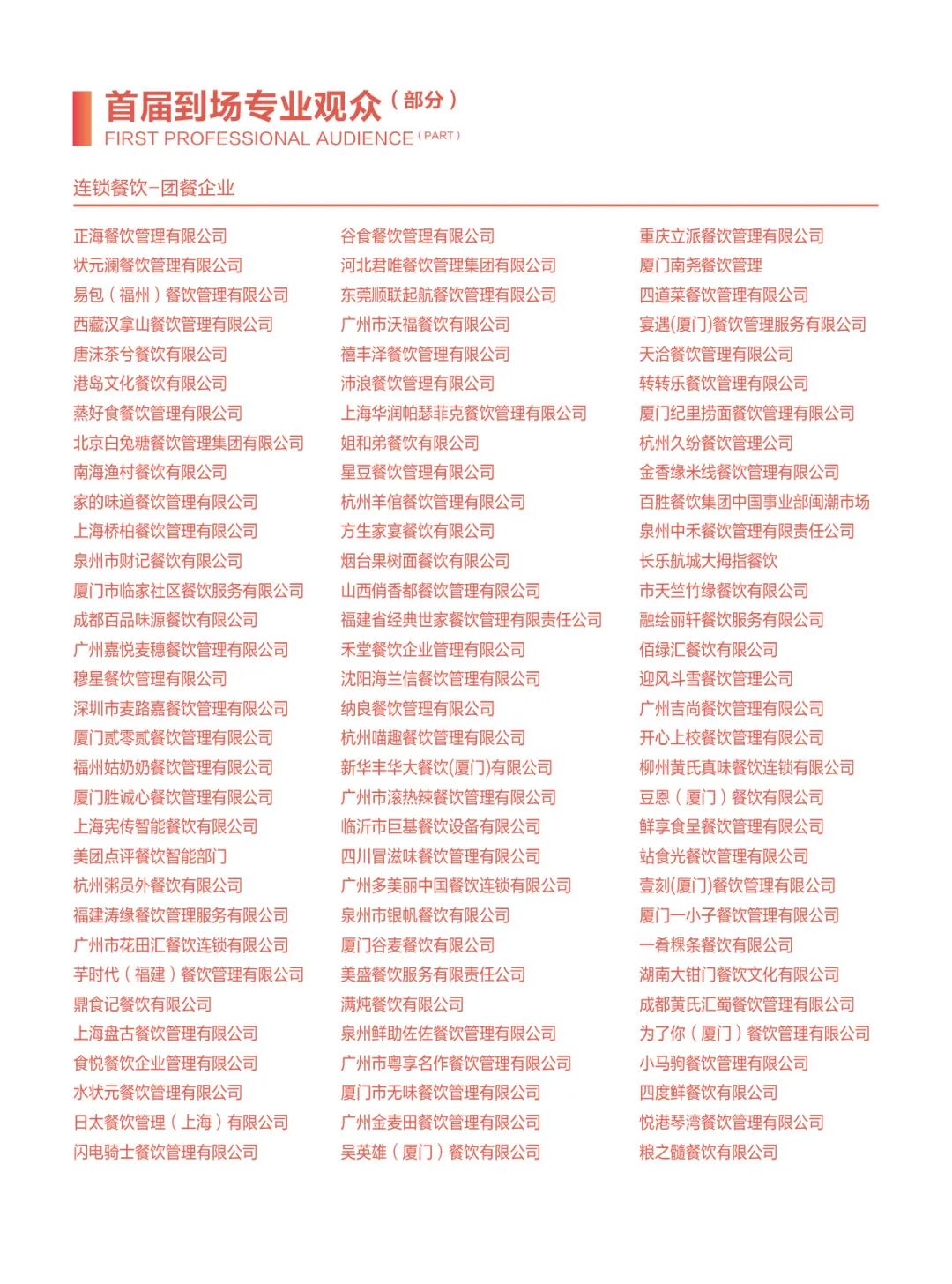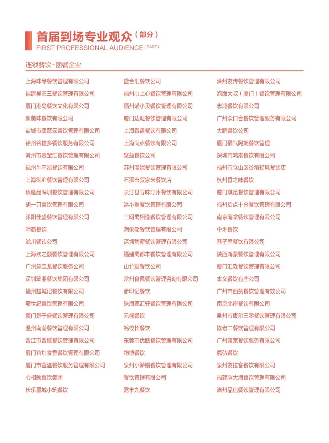包括四川省第三產(chǎn)業(yè)協(xié)會、福建省正餐行業(yè)協(xié)會、江蘇省餐飲行業(yè)協(xié)會、江蘇省商業(yè)聯(lián)合會、蘇州市商業(yè)聯(lián)合會、無錫市商業(yè)聯(lián)合會、浙江省飯店業(yè)協(xié)會、廣東省餐飲服務(wù)行業(yè)協(xié)會、廣東省團餐配送行業(yè)協(xié)會、福建省連鎖經(jīng)營協(xié)會、福建省連鎖經(jīng)營協(xié)會供應(yīng)鏈分會、福建省旅游協(xié)會飯店分會、福建省漁業(yè)行業(yè)協(xié)會、福建省水產(chǎn)加工流通協(xié)會、福建省冷凍食品協(xié)會、福建省批發(fā)零售行業(yè)協(xié)會、福建省蔬菜供應(yīng)鏈協(xié)會、湖北省連銷經(jīng)營協(xié)會、安徽省連鎖經(jīng)營協(xié)會、陜西省連鎖經(jīng)營協(xié)會、大連市連鎖經(jīng)營協(xié)會、福州市餐飲烹飪行業(yè)協(xié)會、重慶市烹任協(xié)會、重慶市火鍋協(xié)會、東莞市連鎖餐飲發(fā)展促進會、東莞市團餐與配送行業(yè)協(xié)會、長沙市餐協(xié)、珠海市餐飲協(xié)會、蘇州市烹任協(xié)會、青島市食品工業(yè)協(xié)會、重慶市冷凍食品行業(yè)協(xié)會、廣州食品行業(yè)協(xié)會、邢臺市烹飪飯店協(xié)會、荷澤市食品安全促進會、福州市老字號協(xié)會、廈門餐飲茶飲同業(yè)公會、廈門餐飲走出去聯(lián)盟、福清市餐飲烹任行業(yè)協(xié)會、泉州市餐飲烹任行業(yè)協(xié)會、泉州市湘菜協(xié)會、晉江市餐飲烹任行業(yè)協(xié)會、石獅市餐飲烹任行業(yè)協(xié)會、莆田市餐飲烹飪行業(yè)協(xié)會、長泰區(qū)餐飲協(xié)會、南平市烹飪行業(yè)協(xié)會、三明市食品行業(yè)協(xié)會。