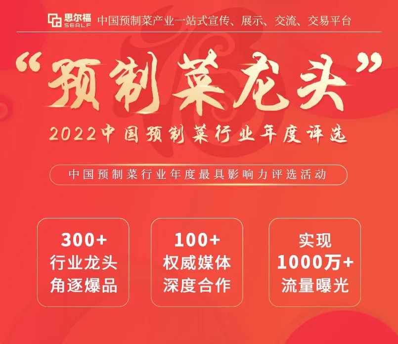 “預(yù)制菜龍頭”中國預(yù)制菜行業(yè)年度評選是由中國預(yù)制菜產(chǎn)業(yè)博覽會組委會主辦,“中國預(yù)制菜產(chǎn)業(yè)一站式宣傳、展示、交流、交易平臺”思爾福承辦,并聯(lián)合國內(nèi)預(yù)制菜領(lǐng)域權(quán)威媒體、相關(guān)商協(xié)會、專業(yè)機構(gòu)等共同參與的一項行業(yè)公益性評選。旨在表彰一年來在預(yù)制菜領(lǐng)域不斷突破、追求卓越的企業(yè)品牌、行業(yè)人物、創(chuàng)新產(chǎn)品、優(yōu)秀渠道商及預(yù)制菜產(chǎn)業(yè)上下游標(biāo)桿企業(yè),激發(fā)預(yù)制菜企業(yè)全方位創(chuàng)新升級,促進行業(yè)更好更快發(fā)展。
