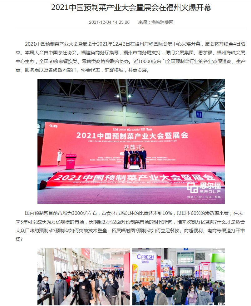 去年首屆中國預(yù)制菜產(chǎn)業(yè)大會暨展會于2021年12月4日在福州圓滿落幕!作為國內(nèi)首個預(yù)制菜專業(yè)型展會,展覽規(guī)模達1萬㎡,共有100+展商參展,吸引近10000位來自全國的各業(yè)態(tài)渠道商、生產(chǎn)商、服務(wù)商以及各級政府部門、協(xié)會代表,匯聚福州,共商發(fā)展。開展首日即得到市場各方的高度關(guān)注,數(shù)百家專業(yè)媒體千萬級流量曝光,現(xiàn)場人潮涌動,盛況空前。