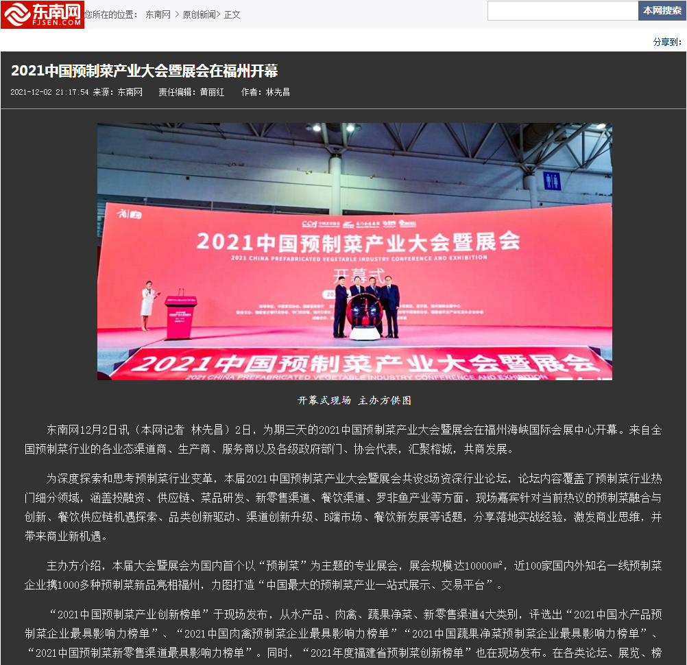全國規(guī)模最大預(yù)制菜展會將于12月在福州舉行