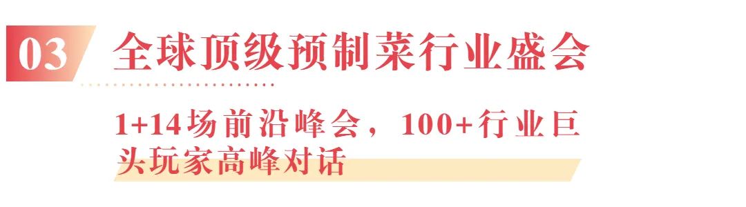“第2屆中國預(yù)制菜產(chǎn)業(yè)大會”,共設(shè)1+14行業(yè)峰會論壇,分別為第2屆中國預(yù)制菜產(chǎn)業(yè)大會主論壇、2022中國預(yù)制菜產(chǎn)業(yè)投融資論壇、2022中國預(yù)制菜產(chǎn)業(yè)供應(yīng)鏈論壇、2022中國預(yù)制菜研發(fā)創(chuàng)新論壇、2022中國預(yù)制菜冷鏈物流論壇、2022中國預(yù)制菜包裝設(shè)計論壇、2022中國預(yù)制菜產(chǎn)業(yè)新零售渠道論壇、2022中國餐飲行業(yè)預(yù)制菜發(fā)展論壇、2022中國水產(chǎn)品預(yù)制菜產(chǎn)業(yè)大會、2022中國凈菜產(chǎn)業(yè)發(fā)展論壇、2022中國團餐預(yù)制菜產(chǎn)業(yè)發(fā)展論壇、2022中國預(yù)制菜企業(yè)經(jīng)銷商大會、2022中國預(yù)制菜復(fù)合調(diào)味料論壇、2022中國菜大師交流高峰論壇、2022中國預(yù)制菜產(chǎn)業(yè)人力資源發(fā)展論壇。將邀請政府單位、專家學(xué)者、資本機構(gòu)、科研人員、頭部企業(yè)負責(zé)人等來自各領(lǐng)域的100+行業(yè)巨頭玩家蒞臨大會現(xiàn)場。