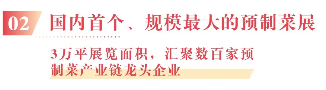 延續(xù)首屆展會的高質(zhì)量、高水平,本次展會全面升級,規(guī)模達30000平方米,設(shè)置1500+標(biāo)準(zhǔn)展位,300家預(yù)制菜龍頭企業(yè)攜最新產(chǎn)品亮相展示,包括安井食品、龍大美食、亞明、珍味小梅園、新聰廚、谷言、甄豪食品、蓋世食品、如意三寶、天馬科技、信良記、海欣食品、溫州杰膳、優(yōu)野優(yōu)予、紫山、古龍等國內(nèi)頭部企業(yè)積極參與,匯聚國內(nèi)外最全預(yù)制菜上下游優(yōu)質(zhì)企業(yè),涵蓋綜合預(yù)制菜品牌、肉類預(yù)制菜、水產(chǎn)品預(yù)制菜、蔬果凈菜、復(fù)合調(diào)味料及冷鏈配套包裝等展品范疇,打造“中國最大的預(yù)制菜產(chǎn)業(yè)一站式展示、交易平臺”。