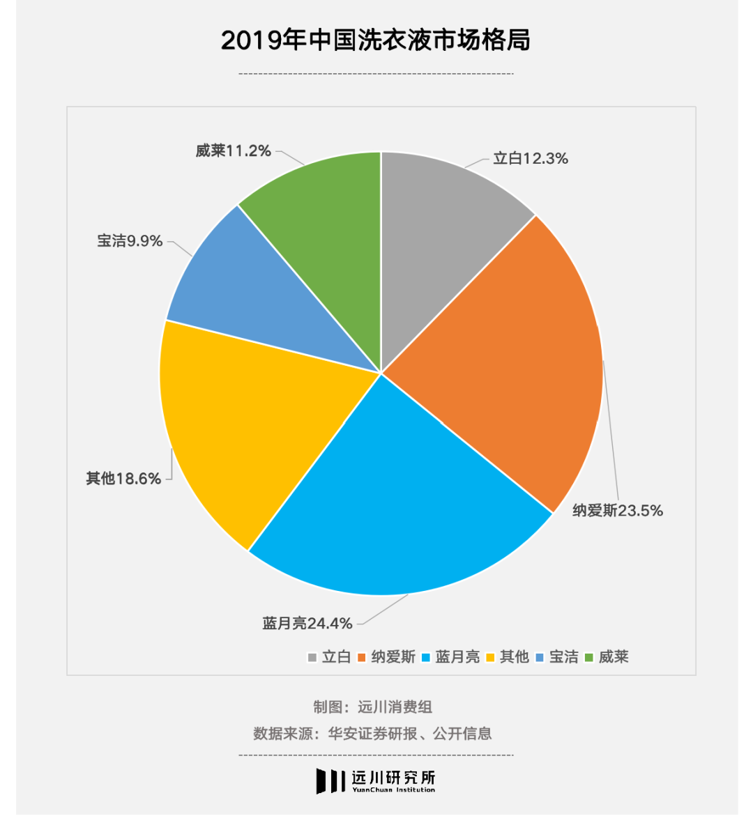 遺憾的是,輪番攻勢下,低價(jià)的奧妙和汰漬并未取代藍(lán)月亮。在2012年,藍(lán)月亮的市占率相當(dāng)于奧妙等后三名的總和[3]。