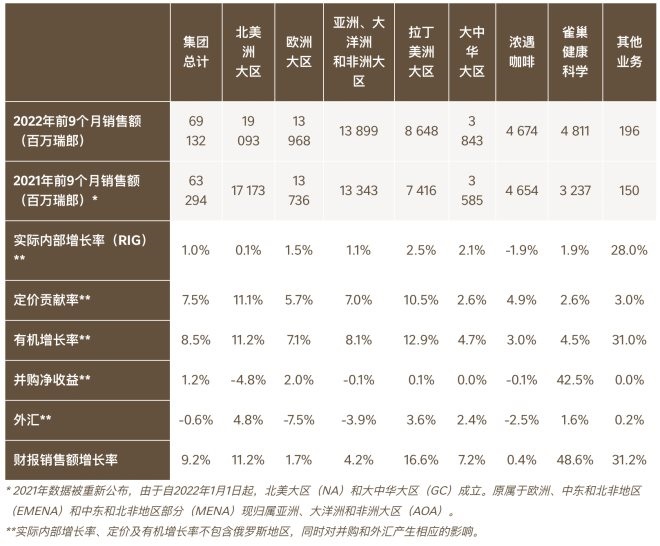 10月19日,雀巢發(fā)布2022年前9個月財報,前9個月總銷售額達到691億瑞士法郎,同比增長9.2%。