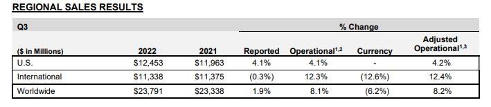 亞太及非洲地區(qū)銷售額42.52億美元(約307.01億元人民幣),同比下降0.9%,經(jīng)調(diào)整后有10.5%的增長。