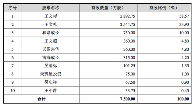招股書顯示,八馬茶葉的董事長(zhǎng)王文彬持有公司38.57%的股份,王文禮持有33.93%的股份,二者分別為公司的第一和第二大股東。此外,天圖資本持有八馬茶葉4.8%的股份。