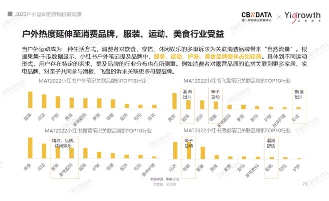 2021年以來,露營、飛盤、滑板熱度持續(xù)攀升,戶外品牌、大眾消費品牌均從中搶到紅利。但當品牌紛紛入局,用戶對戶外的新鮮感正在下降。戶外品牌提高用戶復購、培養(yǎng)更多深度愛好者,大眾消費品牌尋找合適的切入方式、而非簡單“蹭熱度”,是“戶外式營銷”的未來進化方向。戶外市場變局如何、還將產(chǎn)生哪些新玩法,CBNData將繼續(xù)關(guān)注。