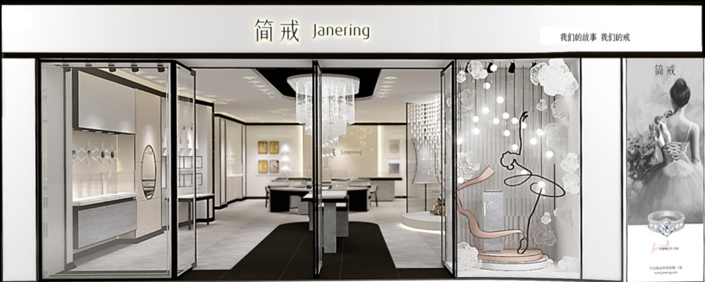 「簡戒」的門店風(fēng)格突出了定制化的專業(yè)元素,所有陳列的產(chǎn)品并不用于售賣,只做展示,降低單店投資門檻,解決了長期困擾珠寶商的“庫存周轉(zhuǎn)”問題。目前「簡戒」已經(jīng)在試點(diǎn)“線下門店+新媒體+私域”的新模式,希望給業(yè)內(nèi)線下珠寶零售模式帶來新探索。