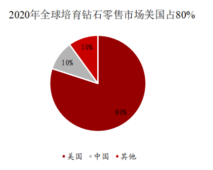 數(shù)據(jù)顯示,美國(guó)市場(chǎng)占據(jù)了全球培育鉆石約80%的銷售量,培育鉆石市場(chǎng)規(guī)模遙遙領(lǐng)先,有八成消費(fèi)者知曉培育鉆石,六成消費(fèi)者了解其與天然鉆石的區(qū)別,并愿意購(gòu)買培育鉆石。