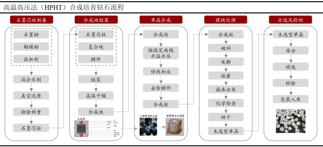 高溫高壓法為國(guó)內(nèi)主流,合成技術(shù)領(lǐng)先世界。