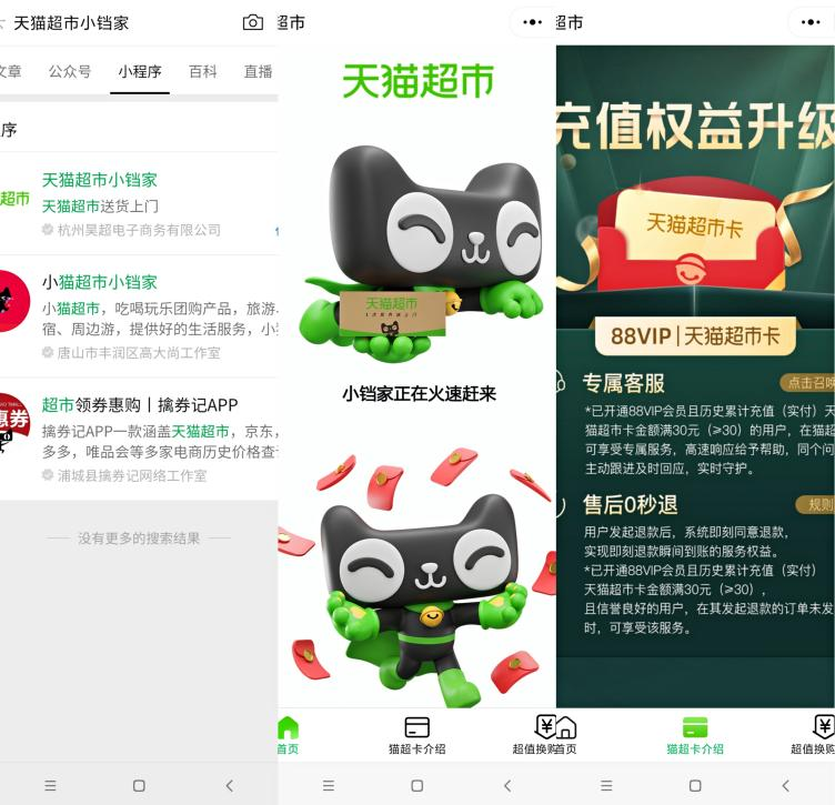 從后續(xù)來看,這只是一個互聯(lián)網(wǎng)“拆墻”起點(diǎn)。近日,一款名為“天貓超市小鐺家”的微信小程序,在雙11前上線,運(yùn)營主體是杭州昊超電子商務(wù)有限公司,從天眼查可以看到,這家企業(yè)由浙江天貓技術(shù)有限公司的全資控股。
