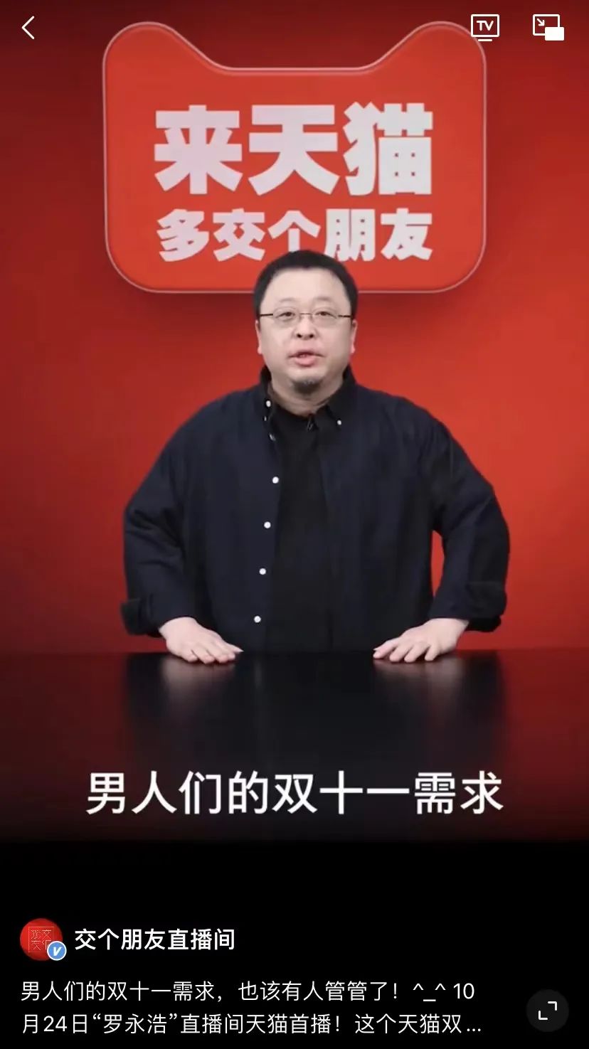 但今年不同,羅永浩和交個朋友于雙11在淘寶直播的消息,引發(fā)廣泛關(guān)注。正打算在今年雙11更換筆記本電腦的林夏,被朋友分享的一張羅永浩直播間的預(yù)告清單所吸引。在林夏的消費認知中,3C數(shù)碼產(chǎn)品是羅永浩作為頭部主播最鮮明的帶貨屬性。10月24日晚,她首次蹲守在羅永浩的淘寶直播間,等待著搶購一款被羅永浩詳細介紹和強烈推薦的筆記本電腦。