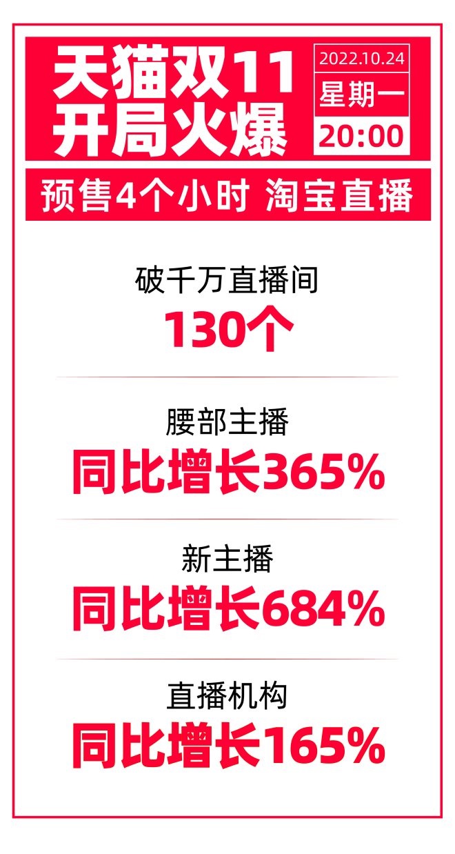 天貓雙11:淘寶直播4小時(shí)涌現(xiàn)130個(gè)千萬直播間