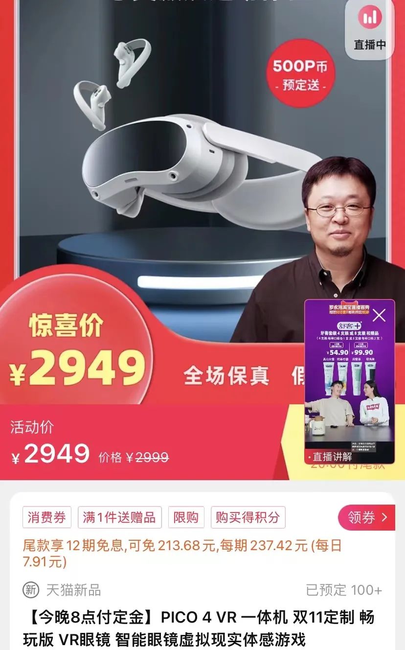 就以羅永浩直播間出現(xiàn)的PICO 4頭顯為例,就在不久前,根據(jù)市場情報公司Sandalwood Advisors監(jiān)測數(shù)據(jù),截至10月14日,PICO 4國內(nèi)市場的在線訂單量超過4.6萬臺,其中京東銷售占比為65%,天貓和抖音各占17%。而在羅永浩直播間,講解十分鐘,售價2949元的頭顯就能獲得100+的訂單量。