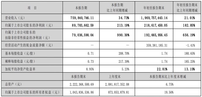 2022年第三季度,鹽津鋪?zhàn)訉?shí)現(xiàn)營(yíng)收7.60億元,同比增長(zhǎng)34.73%;歸屬上市公司股東的凈利潤(rùn)8978.37萬(wàn)元,同比增長(zhǎng)213.19%。前三季度,鹽津鋪?zhàn)訉?shí)現(xiàn)營(yíng)收19.70億元,同比增長(zhǎng)21.01%;歸屬上市公司股東的凈利潤(rùn)2.19億元,同比增長(zhǎng)182.85%。