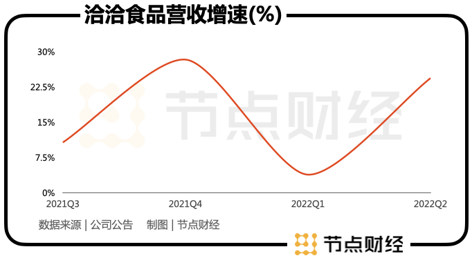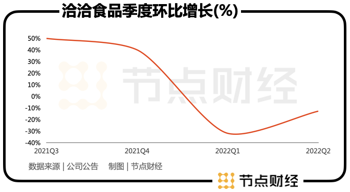 實際上,堅果業(yè)務(wù)的高光時刻并沒有持續(xù)太久。在2018年-2021年中,堅果業(yè)務(wù)的增速,只在2021年實現(xiàn)了同比上漲,從2020年的15.14%反彈至43.82%,其余時間都在下滑。今年上半年,堅果業(yè)務(wù)貢獻了近20%的收入,規(guī)模超5億元。