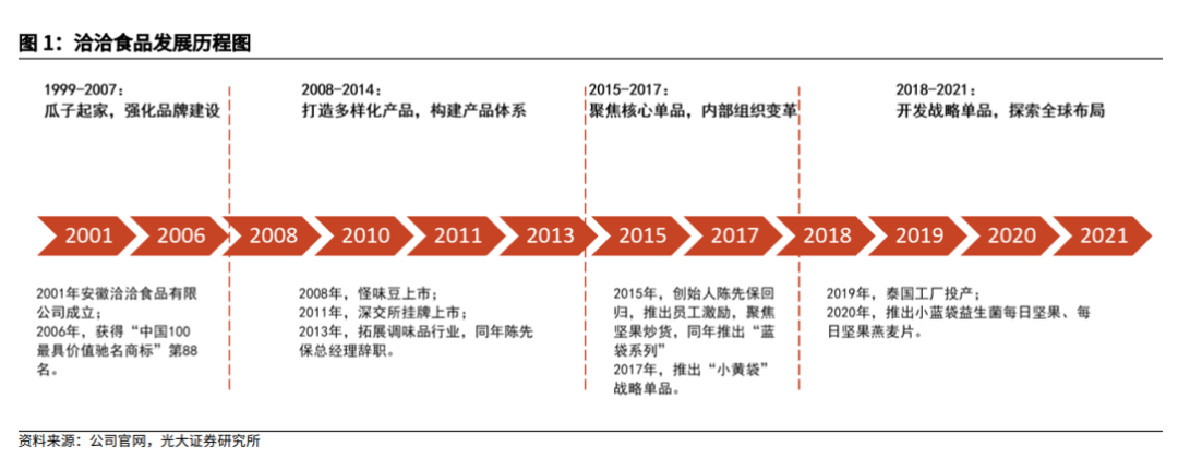 我國的瓜子行業(yè)歷史悠久,洽洽食品所在的安徽更是行業(yè)重鎮(zhèn)。公司直到2001年才成立,但崛起速度卻很快,同時起步甚至資格更老的企業(yè)都被它甩到了身后。