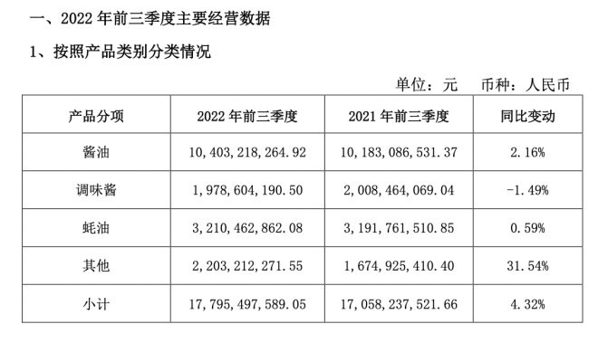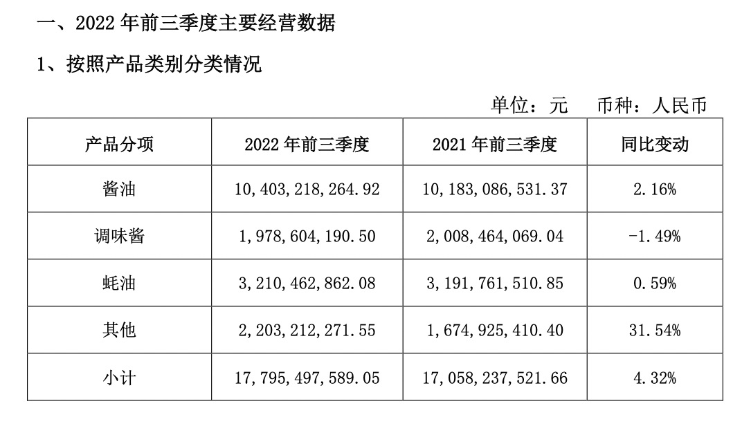 10月26日,海天味業(yè)發(fā)布2022年第三季度財(cái)報(bào)。