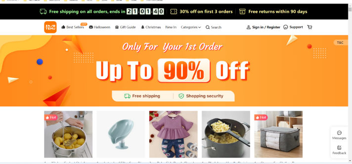 Temu網(wǎng)站主頁
